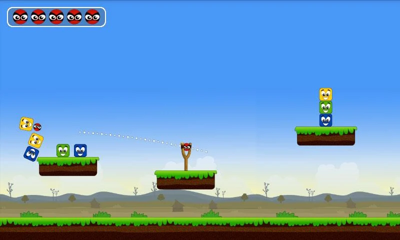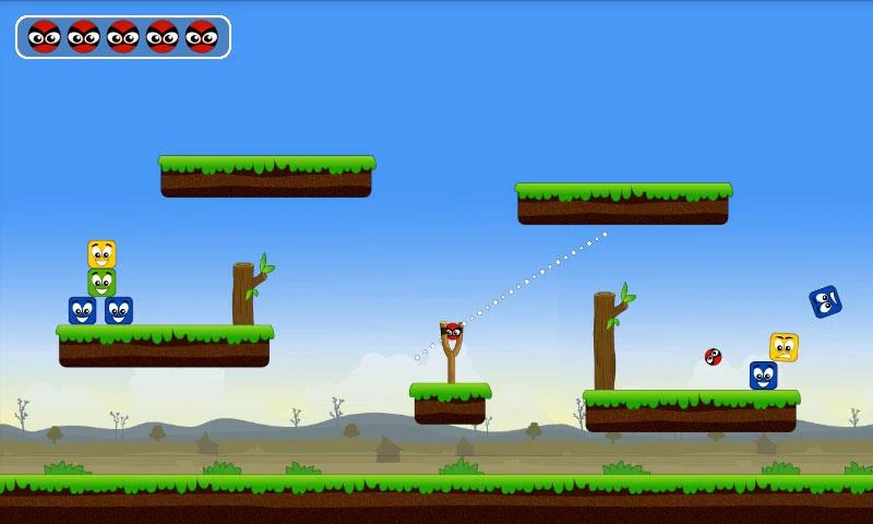 هدف اللعبة هو لاسقاط المربعات باستخدام مقلاع والكرات.