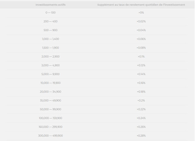 وهذا الجدول يوضح لك الخطط الإستثمارية يعني كل حصدت مال أكبر تحصل على نسبة ربح جيد من الشركة.